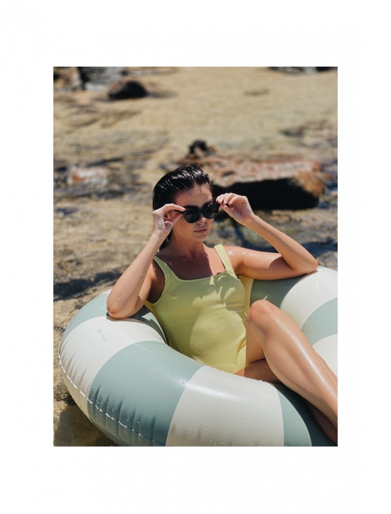 Ajouter une touche d'élégance colorée et rétro à vos après-midi piscine et plage avec les bouées Petites Pommes !
