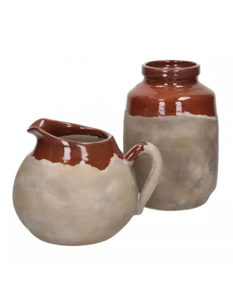 Ces magnifiques vases combinent un dessus brun rouille chaud avec un dessous beige plus doux, créant un look harmonieux et intemporel.