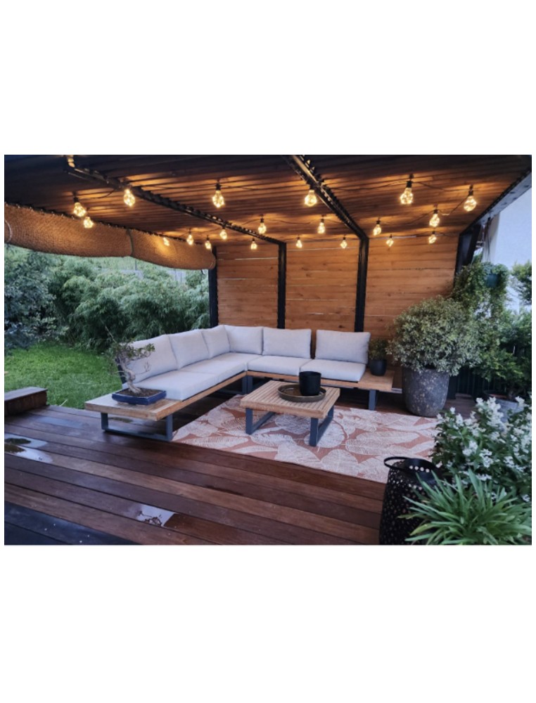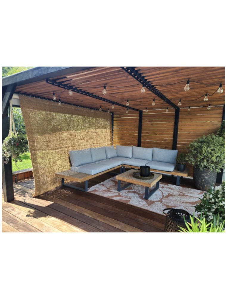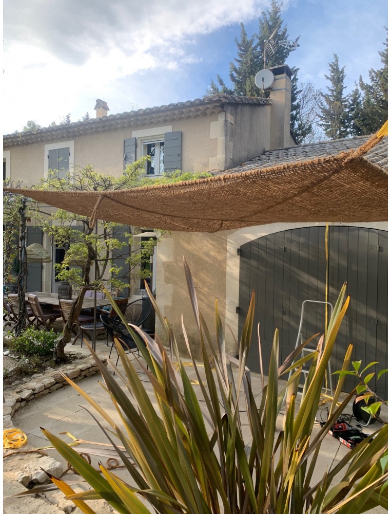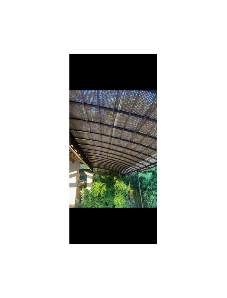Ce voile d'ombrage en fibres de coco, avec 4 points d'attache reliés aux cordes de renfort en diagonale est 100% naturel.