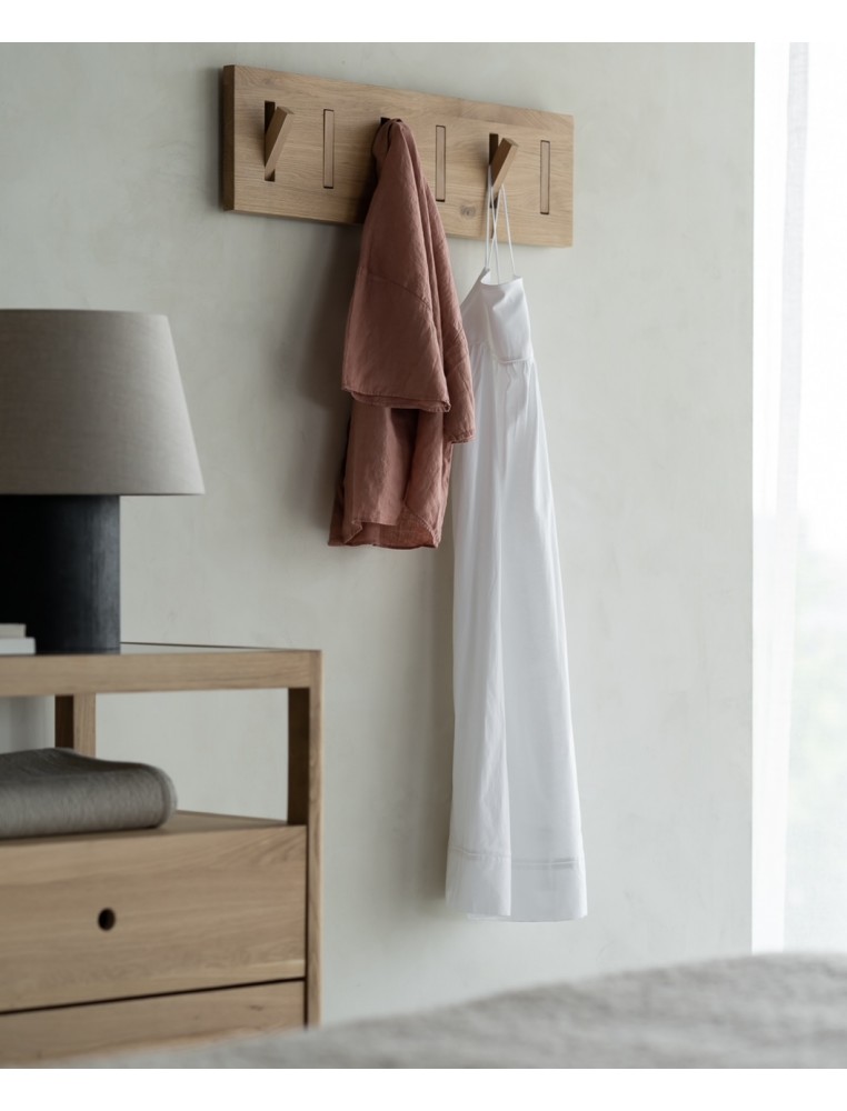 Ce porte-manteau minimaliste en chêne massif est une excellente solution pour décorer votre couloir et optimiser l'espace mural en y accrochant manteaux et accessoires.