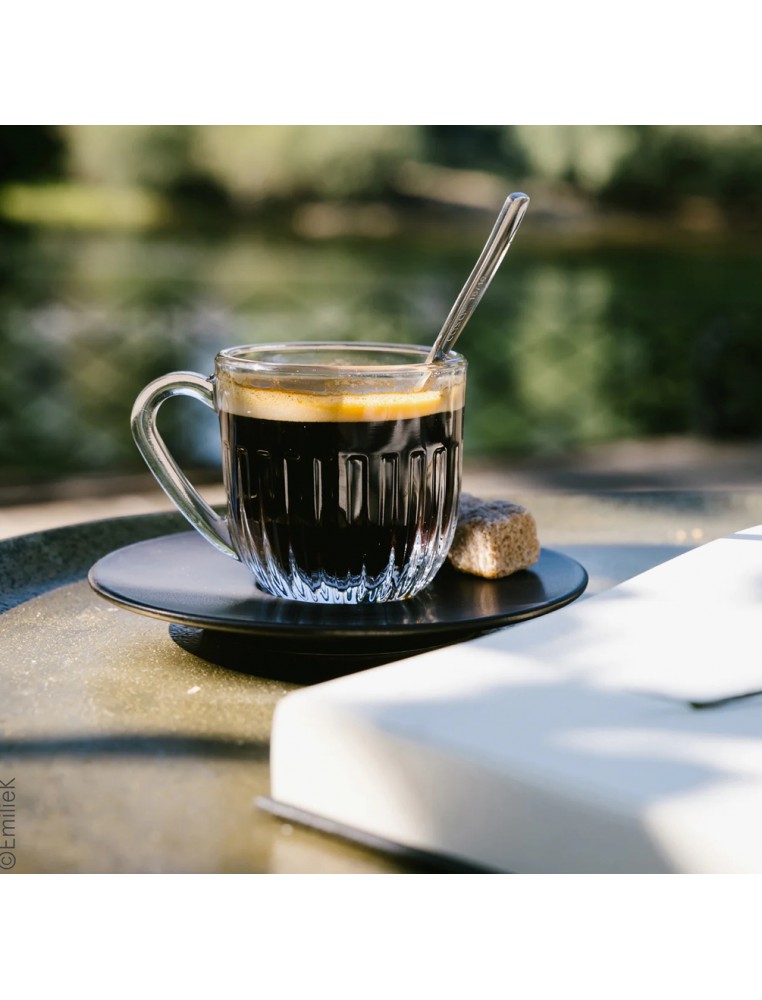 Avec son jeu de côtes subtil connotation marine, tel une coque de bateau breton, elle invite à l'évasion, à une douce rêverie, suspendue à l'évanescence des arômes d'un café chaud.