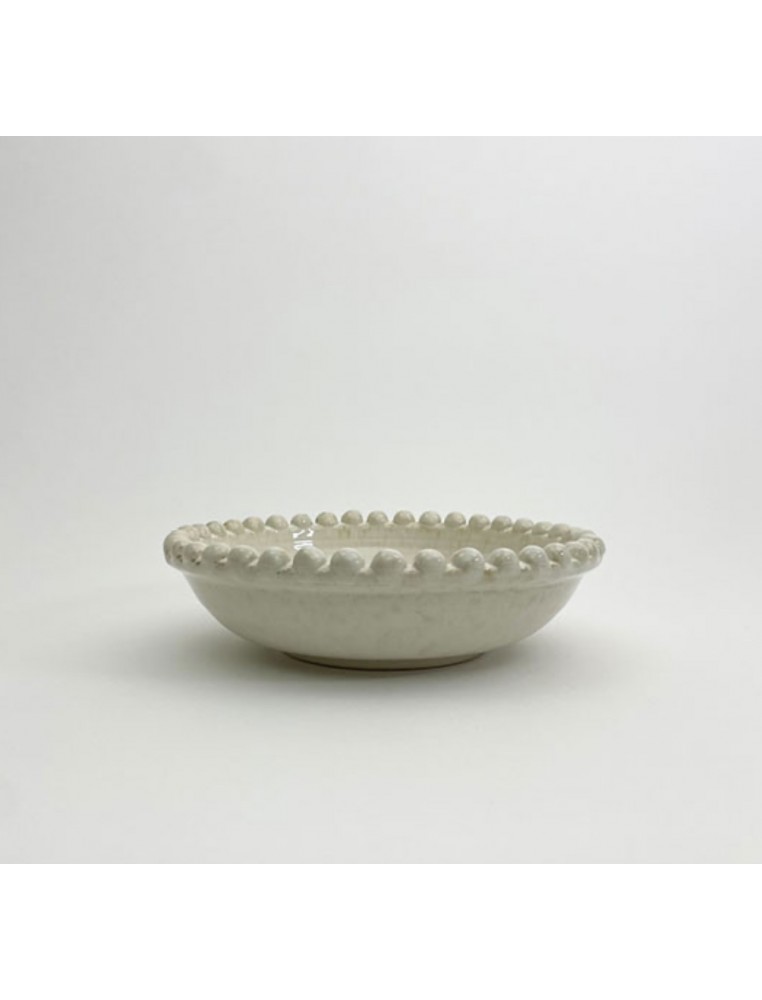 Coupe en céramique avec bord orné de perles en relief, parfaite pour mettre en valeur vos plats et salades, mais également vos petits objets ou bijoux, ..