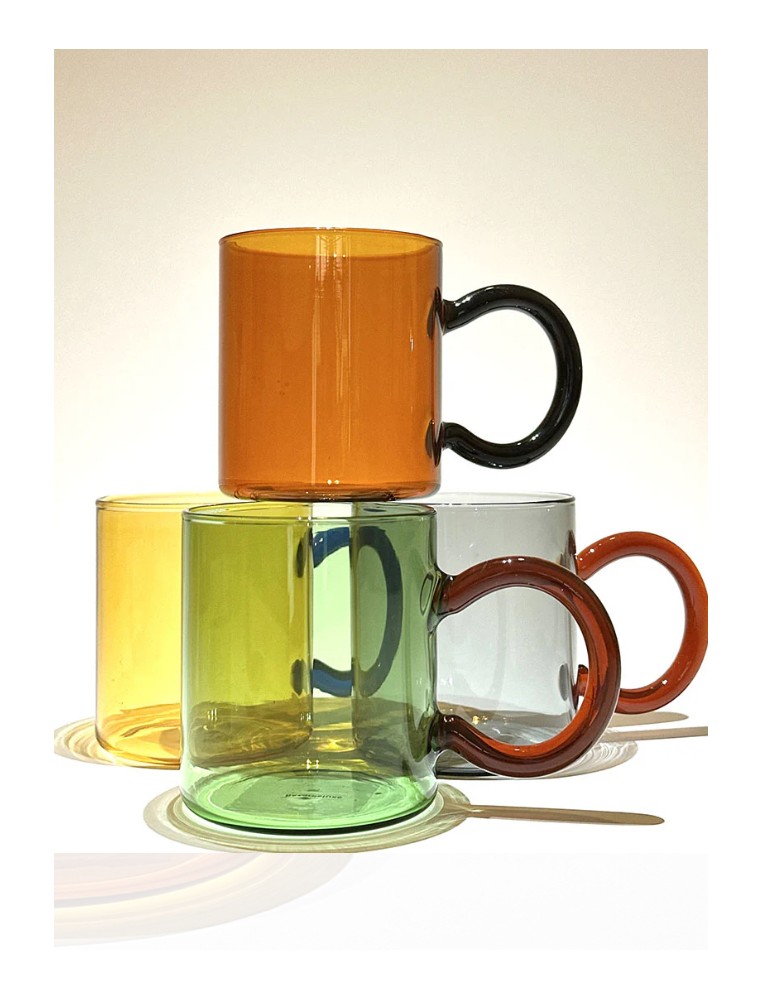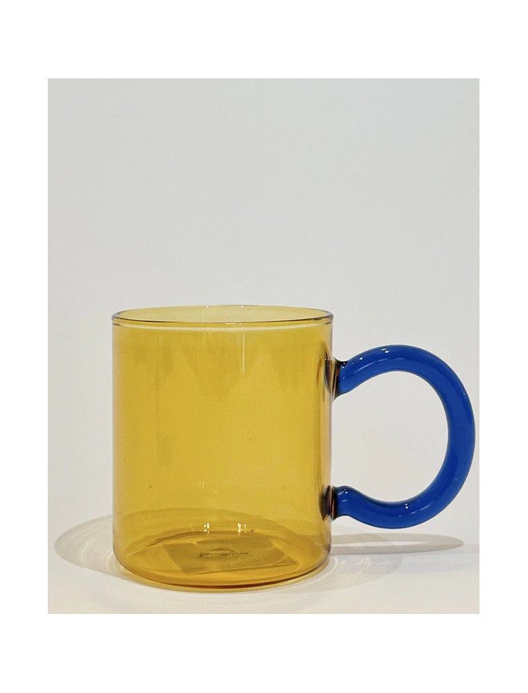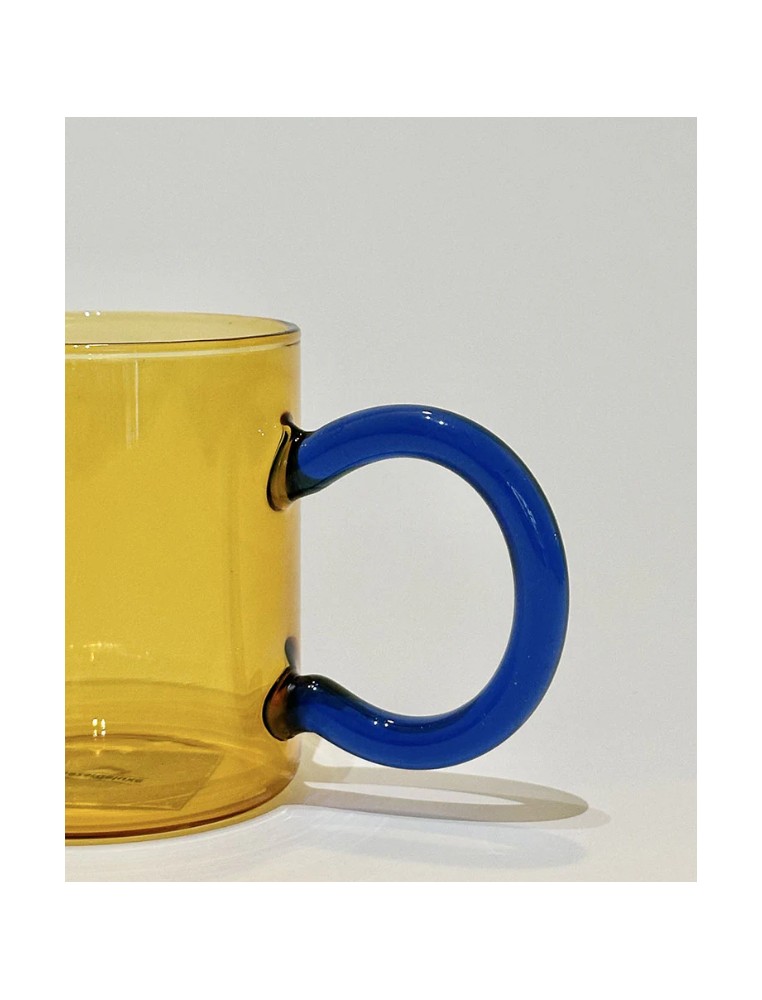 MUG 350 VERRE JAUNE ANSE BLEUE